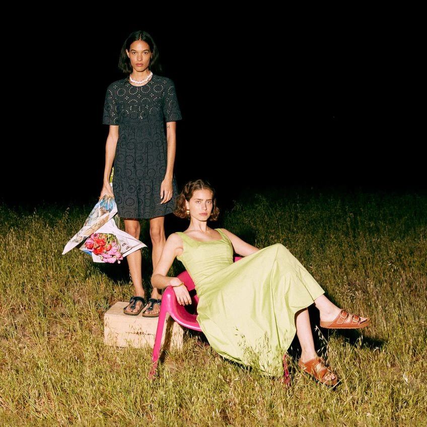 Introducing the BIRKENSTOCK + STAUD Summer Capsule: a limited-edition collection of timeless, free-spirited and versatile pieces created in partnership with luxury boutique brand STAUD. Designed for effortless day-to-night dressing, the collection includes this elevated Arizona, made with croc embossed leather, oversized buckles and STAUD’s signature contrast-stitching. Pair with STAUD dresses and separates for any and all occasions the ultimate outfit completer. STAUD ready-to-wear and accessories available at staud.clothing.